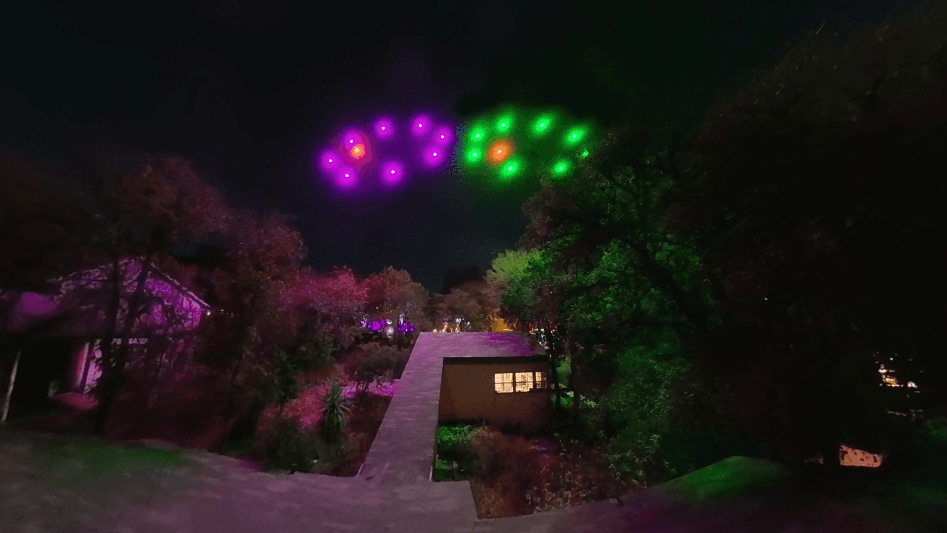 We built compact formations and wind-tolerant loops for dense residential airspace, coordinated rooftop operations, and locked cues to audio for punchy reveals (pumpkins, bats, and “BOO” title hits).